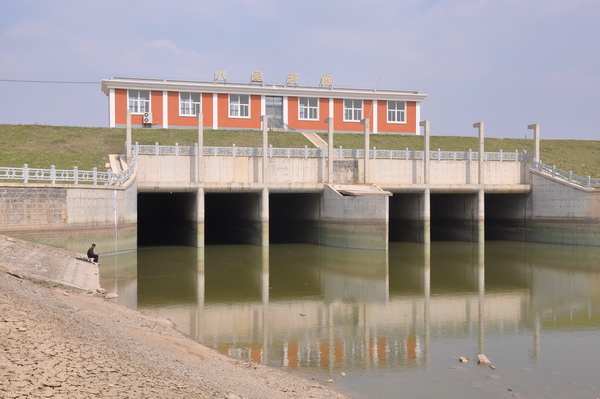 八里河閘  潁上縣八里河閘位于沙潁河潁右右堤,新建八里河閘為6孔涵洞,三孔一聯。控制流域面積483km2,5年一遇設計除澇流量264m3/s,垂直水流方向總